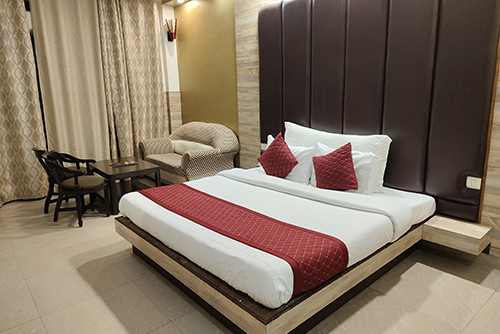 Deluxe rooms are best suited for quality and comfortable accommodation. All our deluxe rooms offer amenities like One Double/Single bed with Private bath, Air Conditioned, Shower, Wake Up Service/Alarm-clock, Seating area, Bathroom Amenities, Western Toilet, Personal safe, Channel Music, Color television, 24-hour room service, Laundry service, Telephone.